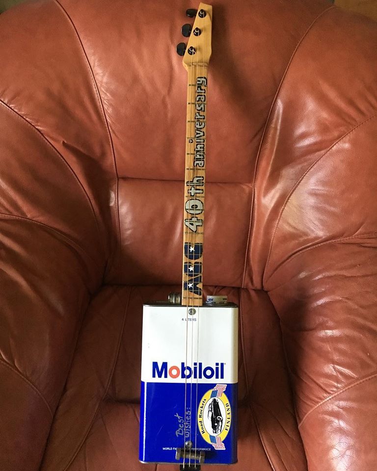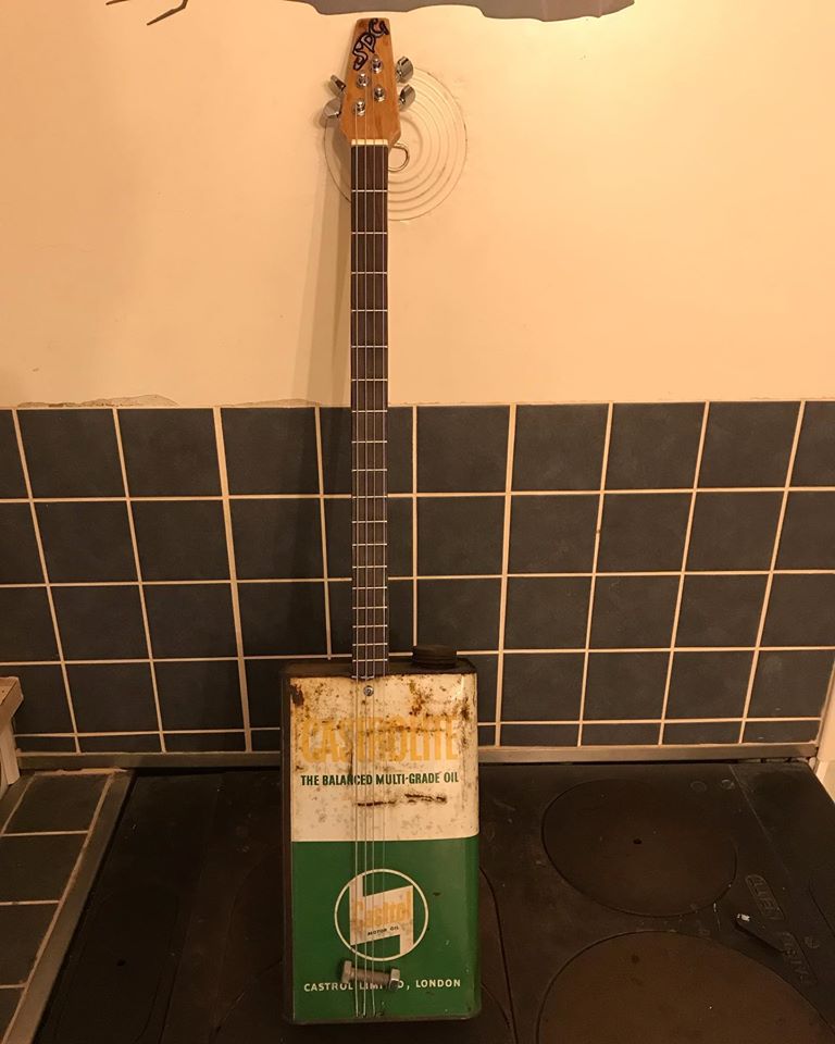 Gitarr av oljekanister till en entusiast av gamla föremål.